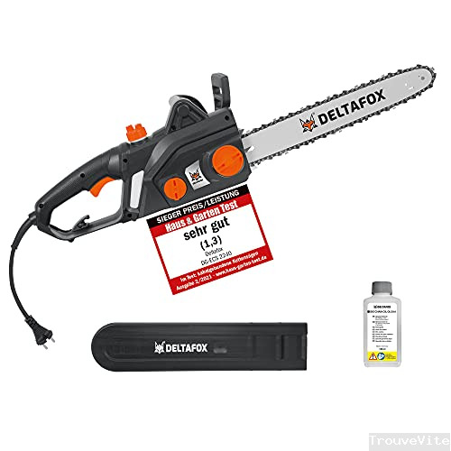 Tronçonneuse électrique DELTAFOX - 2200 W - longueur de coupe 40cm - lame de qualité et chaîne - Soft Start - protection anti-recul - inclus 180ml d'huile bio pour chaîne - puissance de sciage 15,3m/s