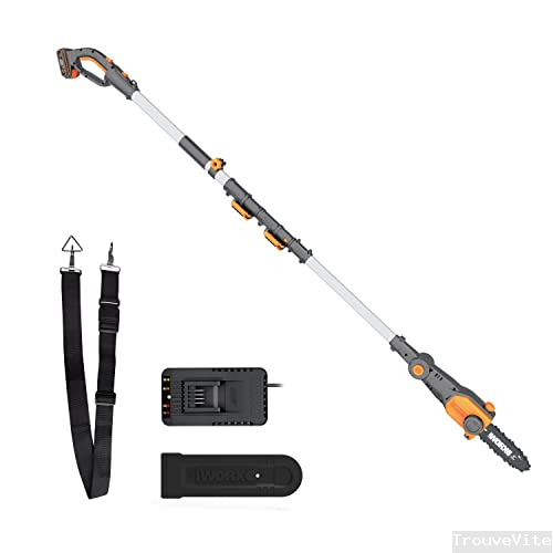 WORX - Elagueuse / tronçonneuse sur tige télescopique 20V - 2Ah - WG349E -⌀ 20 cm (Hauteur de coupe 4m, livrée avec batterie et chargeur, harnais, gaine de lame)