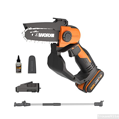 WORX 18V(20V MAX) Mini Tronçonneuse sans Fil WG324E.1, PowerShare, Barre de 12 cm, Faibles Vibrations, Légère et Portable, 1 Batterie et 1 Chargeur Inclus