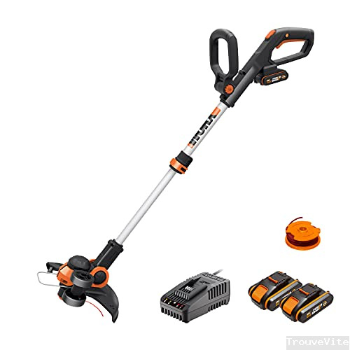 WORX Coupe Bordure sans Fil 18V(20V Max) avec 2pcs Batterie WG163E.3, Débroussailleuse à Batterie avec Bobine Fil de Coupe, Longueur du Fil 3m, Diamètre de Coupe 30cm, Diamètre du Fil 1.65mm